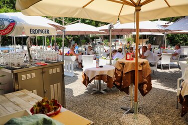 Behind the bar you can find a little tavern with a lot of available tables and a large television for our guests.
