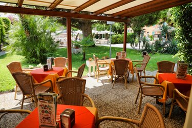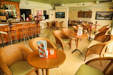 The hotel has two bars. The inner bar, large and warmly furnished, will welcome you with its light colours and comfortable sofas, togher with a wonderful outside veranda for your relaxing moments during the day.